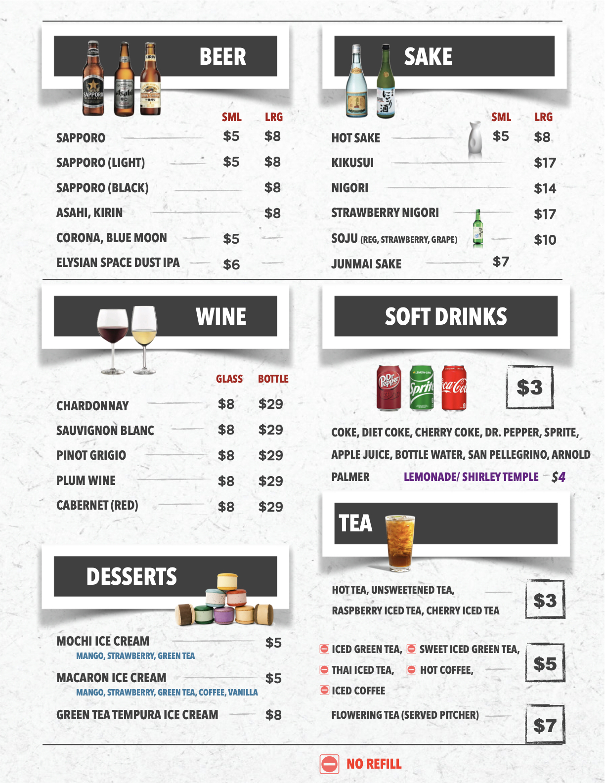 beverages/ deserts