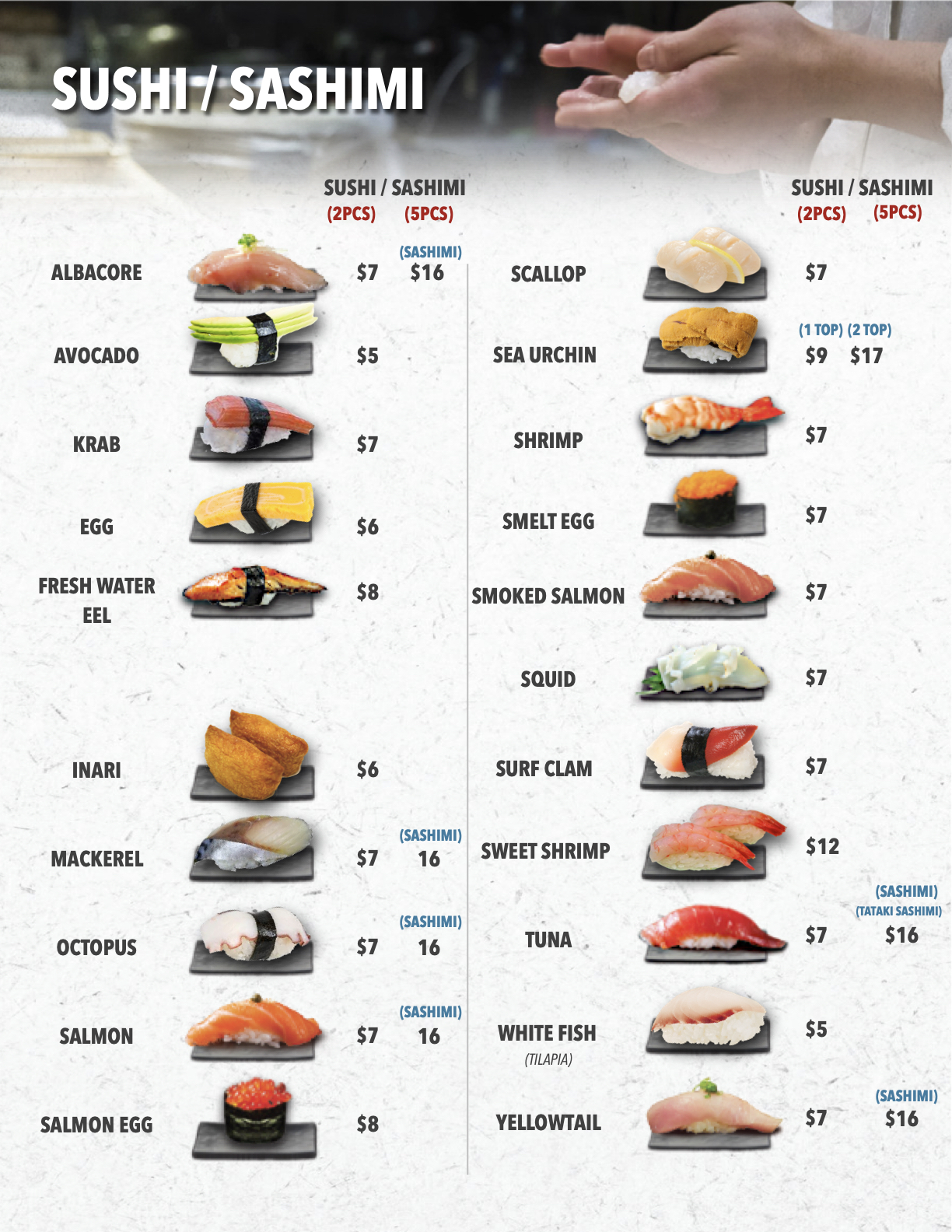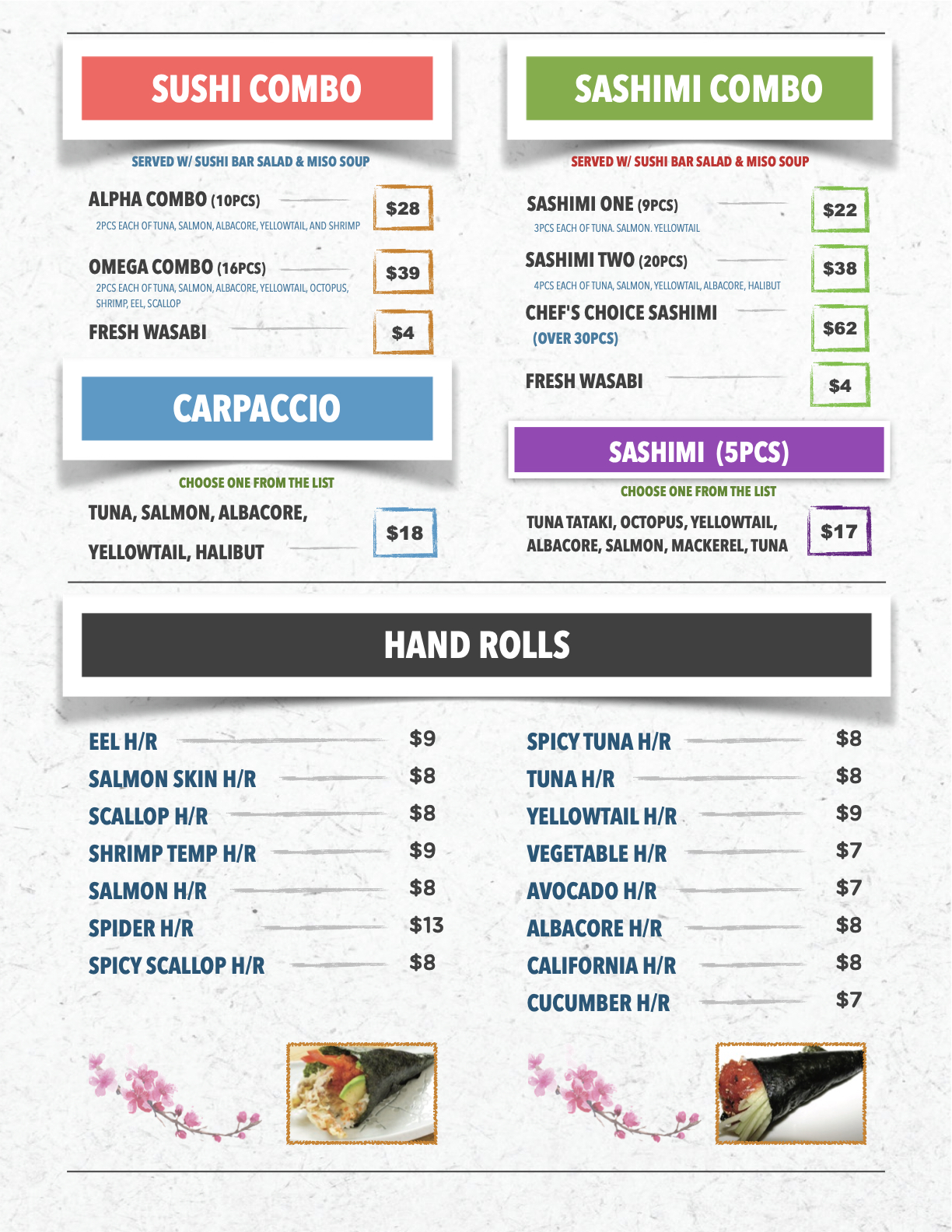 sushi.sashimi combos/ hand rolls