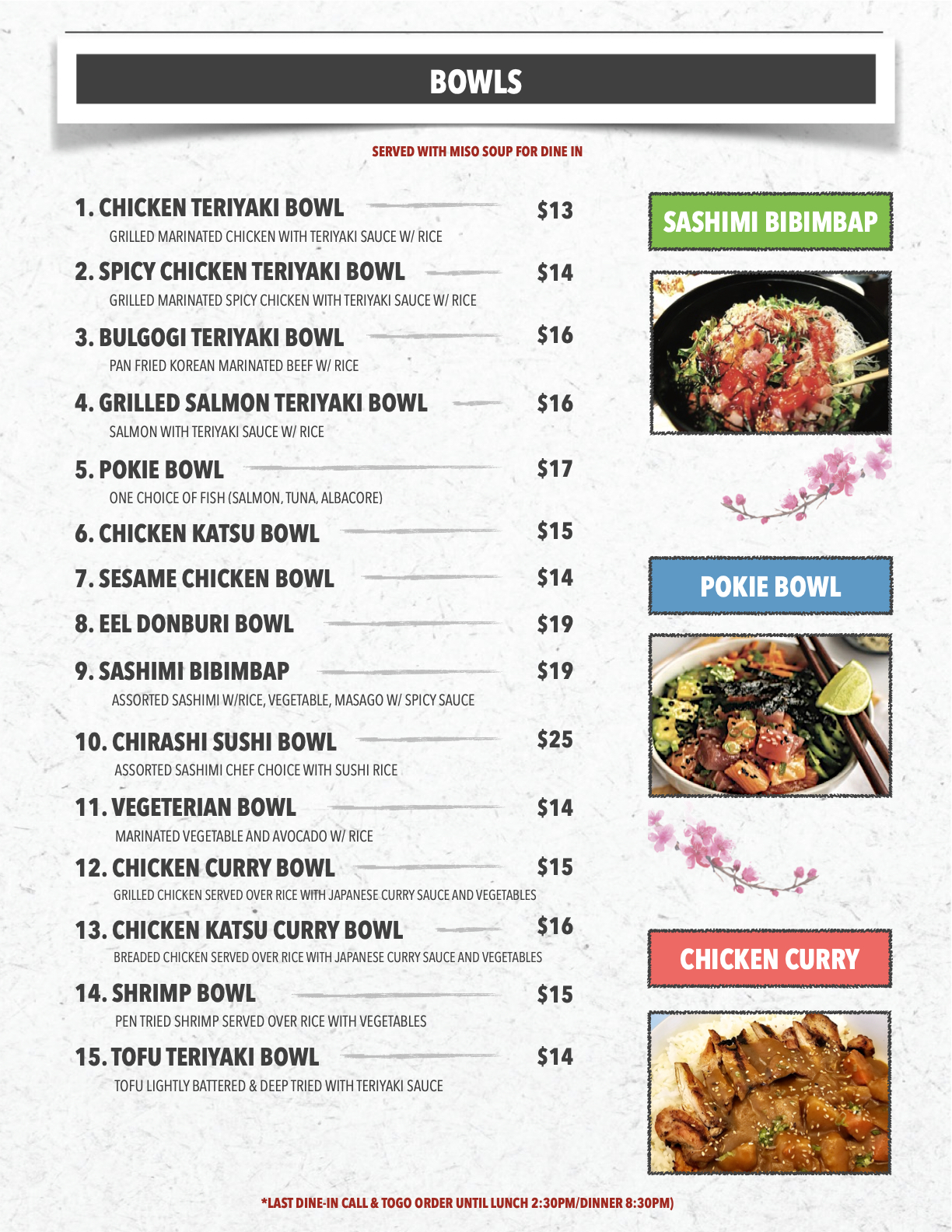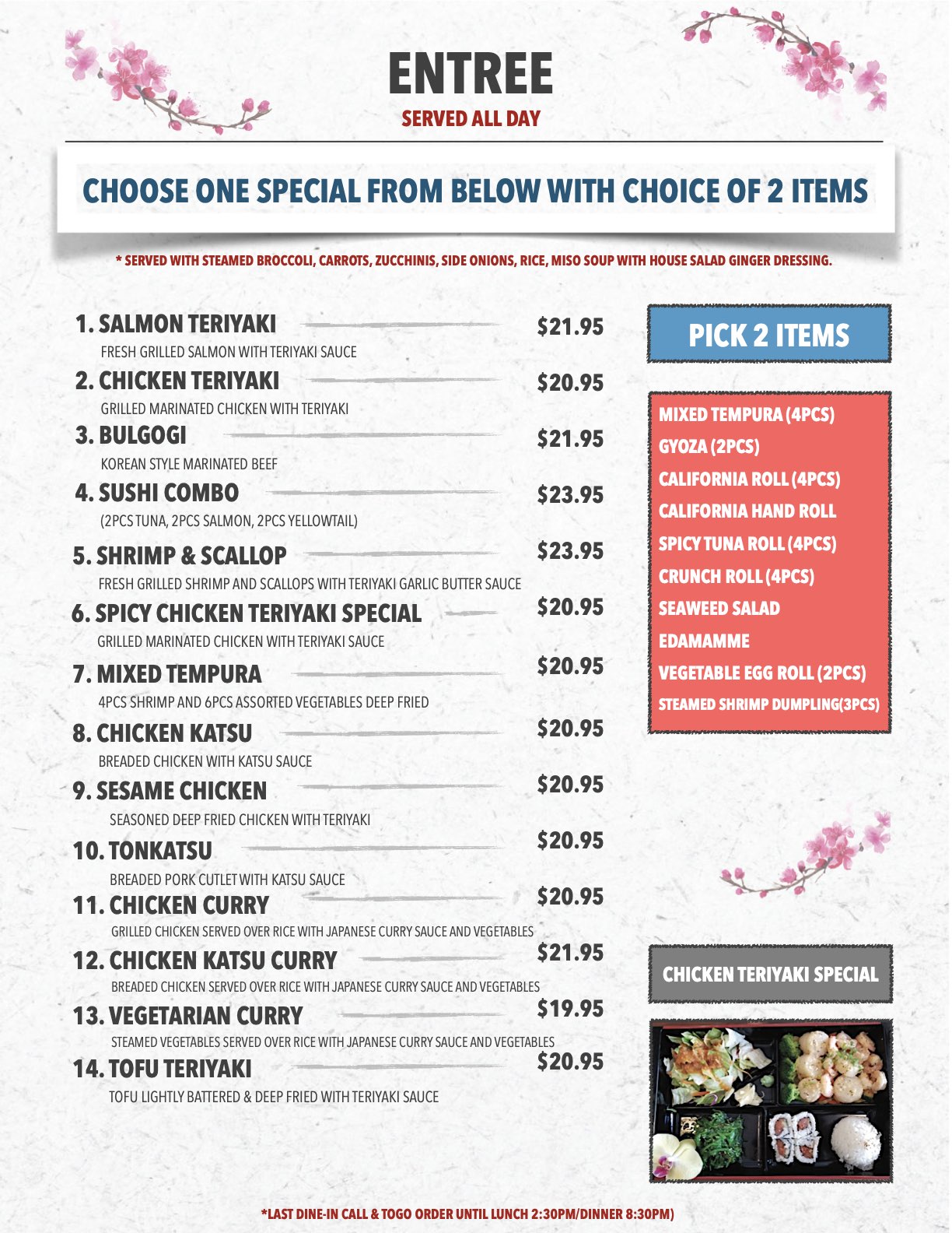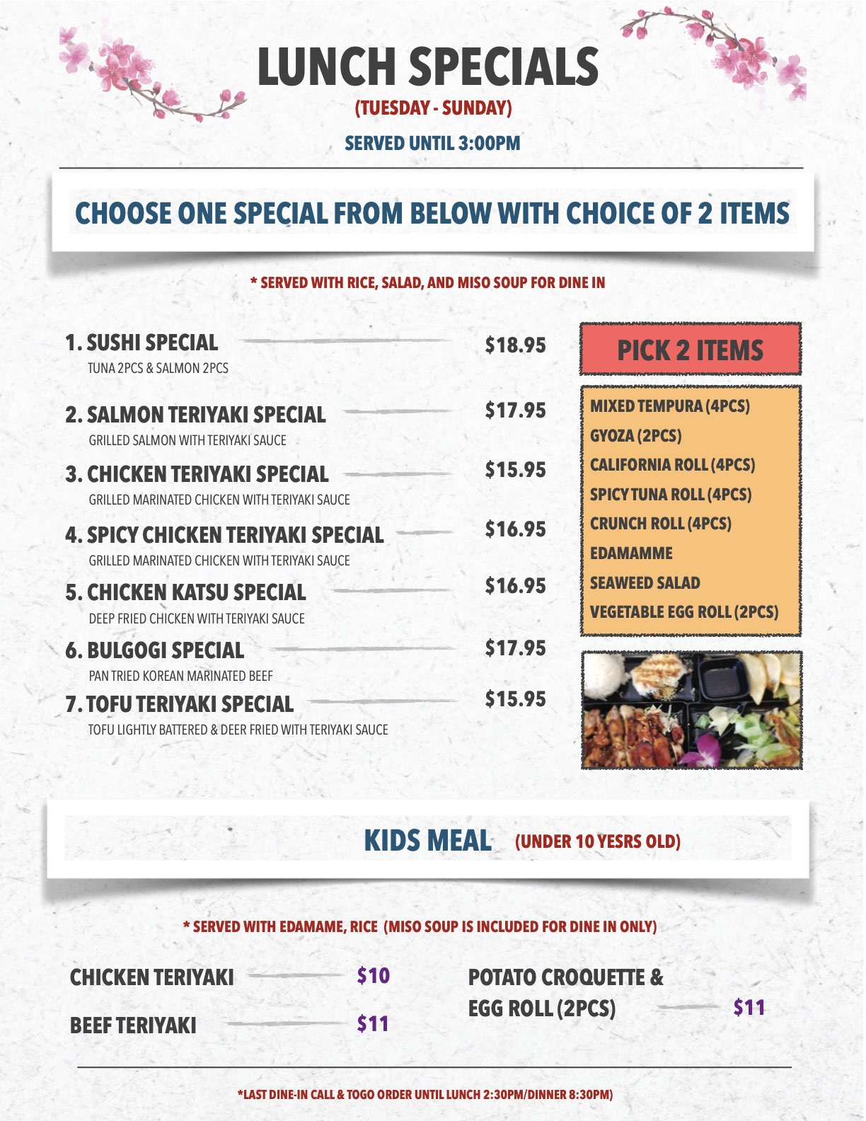 lunch specials/ kids meals